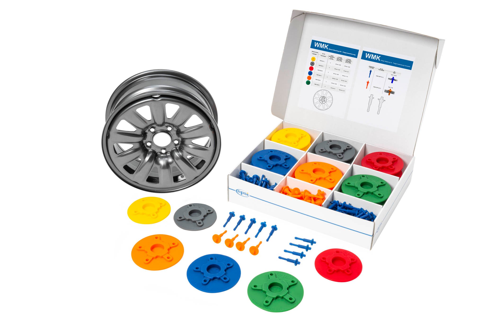The Wheel Masking Kit contains 124 reusable masking components designed for repeated use in coating environments.